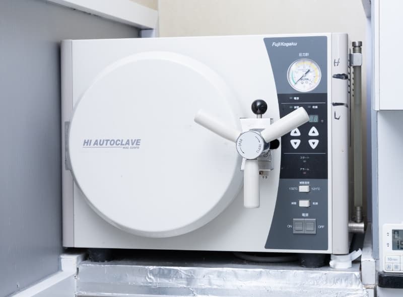 オートクレーブは、高温高圧の蒸気を用いて器具を滅菌する装置です。また、滅菌済みの器具は、密封された状態で保管されるため、患者さまごとに清潔な器具を使用することができます。