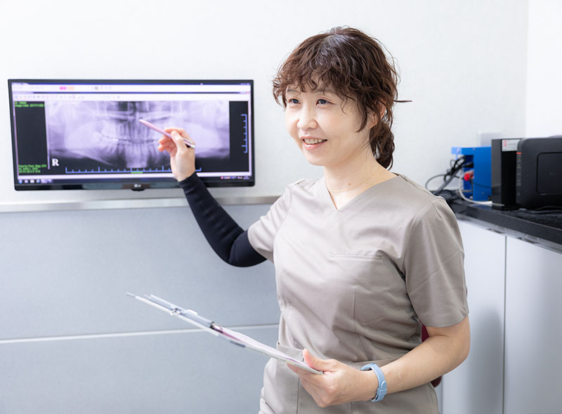 検査の結果をもとに、お口の状態や必要な治療をわかりやすく説明いたします。患者さまのお口の特徴や生活スタイルに合わせて、適切な治療法をご提案します。